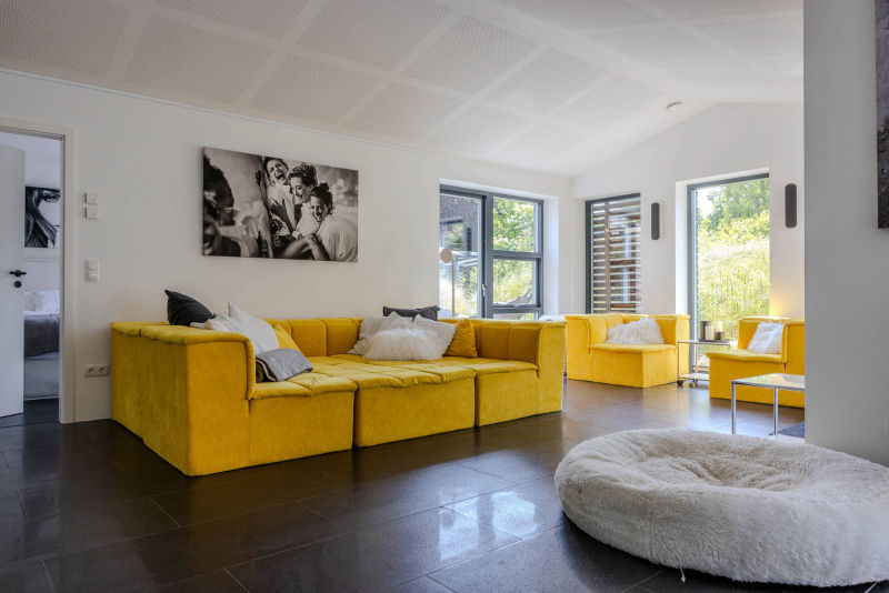 Schwarze Fußböden mit Fußbodenheizung, im Kontrast zu weißen glatten Wänden – das ist die HOOK-LINE. Eine Luxus-Küche vom Feinsten, Bäder zum Niederknien, 4 Doppel-Schlafzimmer, ein Esstisch mit Eames-Stühlen, an dem man auch Billard spielen kann, dazu ein XXL-Big-Sofa, massieren die Sinne, wie die BASS-LINE in Ihrem Lieblingssong.