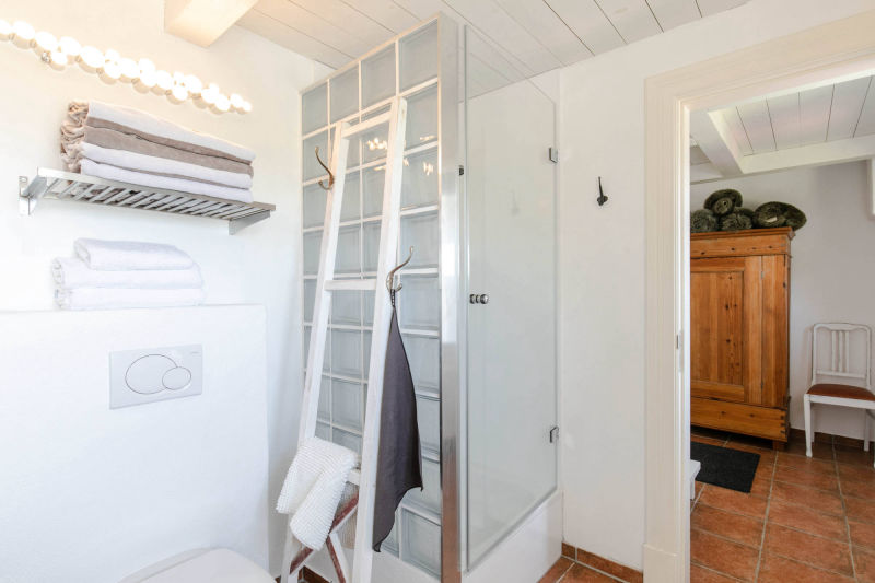 Bademäntel, Saunahandtücher sind vor Ort – kalt Abduschen können Sie sich (auch) draußen, Warmduscher können das in den 2 Bädern/WCs- im Erd- oder Dachgeschoss erledigen.