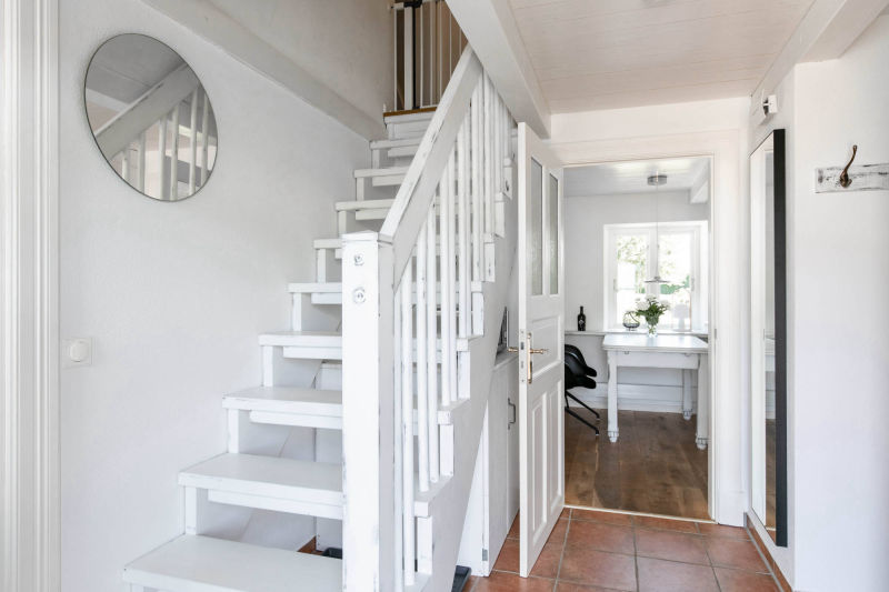 Außen - reetgedeckt, weißes Mauerwerk, dunkelgrüne Eingangstür, weiße Fenster mit dunkelgrünen Blendrahmen. Innen – alle Wände verputzt, Fußböden im Erdgeschoss Eichendielen und Fliesen – Holzdecken mit sichtbarer Balkenlage – kurzum ein echter Traum für 2 (geht auch für 4).