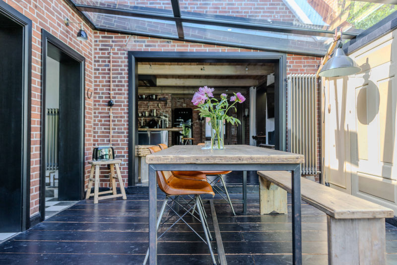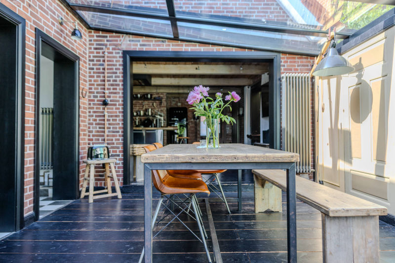 Wir haben die Dorfstraße 35 „im Affekt“ gekauft – manchmal genügt ein Impuls, ein Sonnenstrahl, der durch eine verdreckte Fensterscheibe in ein verlassenes Haus fällt, damit eine Idee entsteht – ein Gedanke zur Wirklichkeit wird. Doch wie verwandelt man ein altes, verfallendes „Haus mit Friesengiebel" zu einer wohnlichen „industrial vintage Drag Queen“.