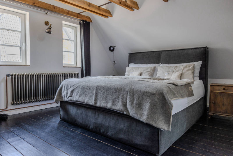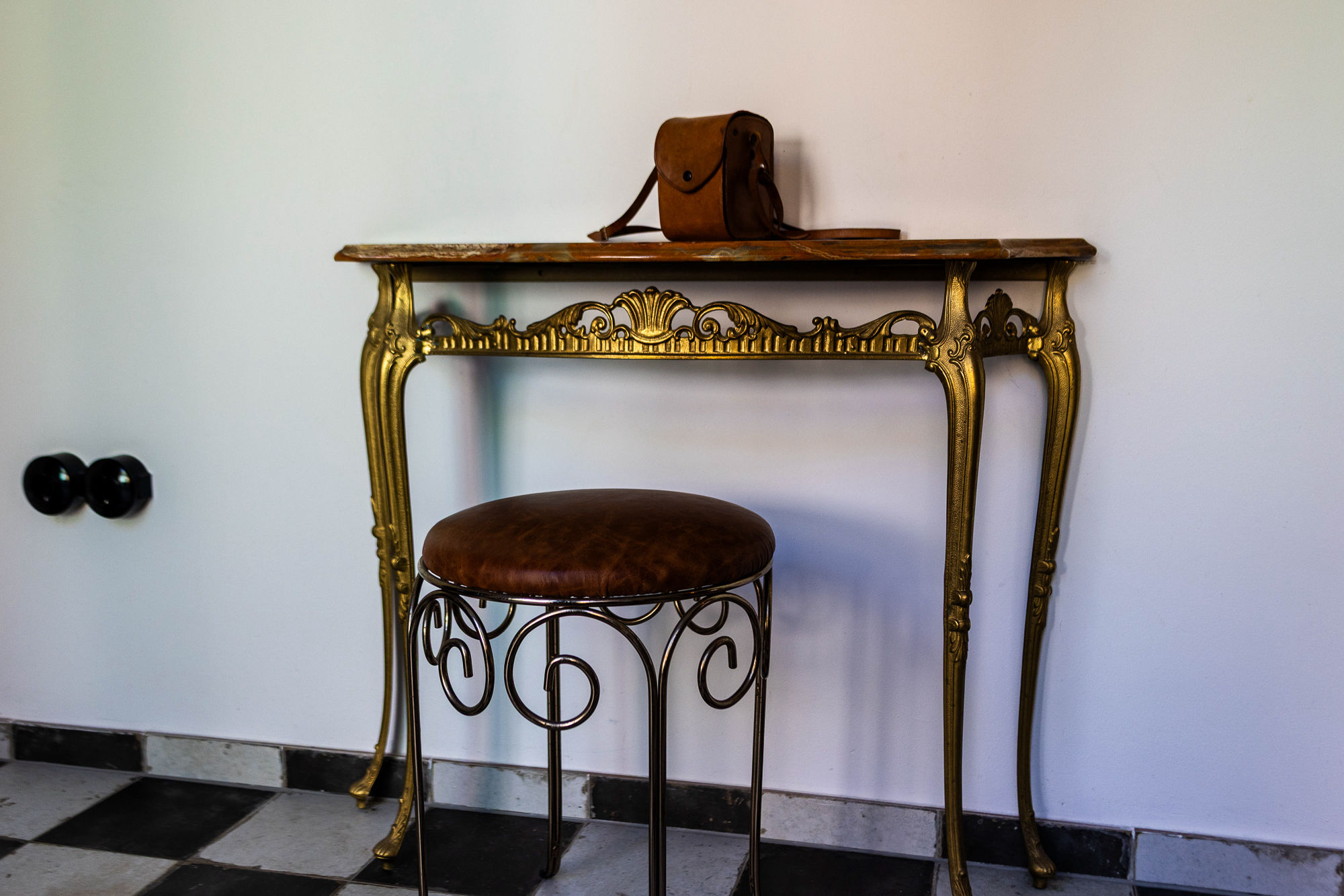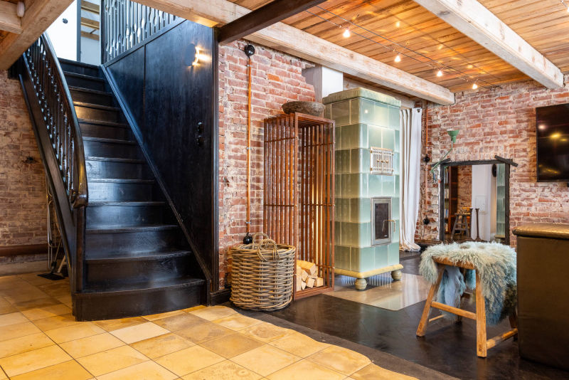 Wir verwandeln den Look und behalten das Aussehen, wir geben dem Haus die alten Möbel „restauriert“ zurück und fügen neu „alte“ Unikate hinzu. Wärme ins Haus bringt neben der neuen Heizung mit stilsicheren Heizkörpern, ein von uns wiederaufgearbeiteter Kachelofen, Sauna, Spiegel, Stoffe, Bücher, Küche, Wintergarten, Bad mit allem Pipa Po und die anderen von nah und fern zusammengetragenen Alltagsgegenstände bilden eine Brücke zwischen uns und den Bewohnern.
