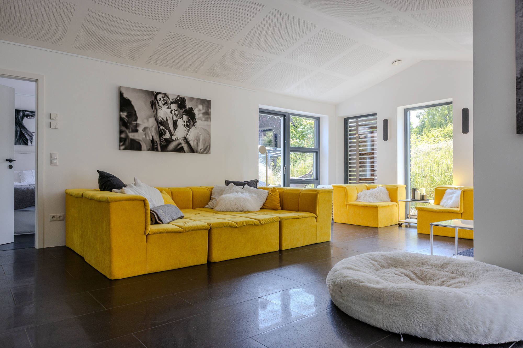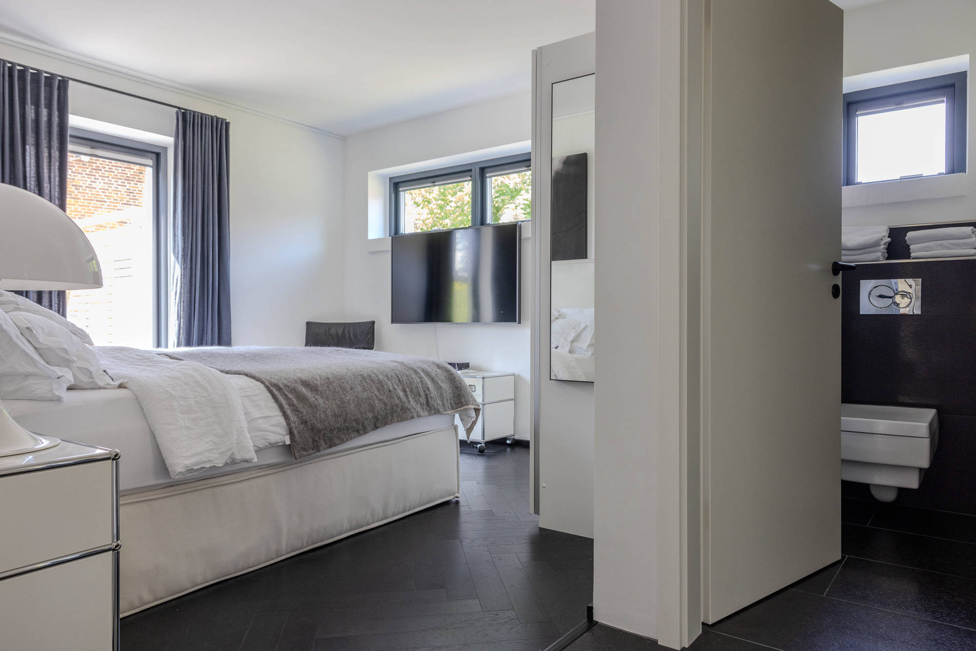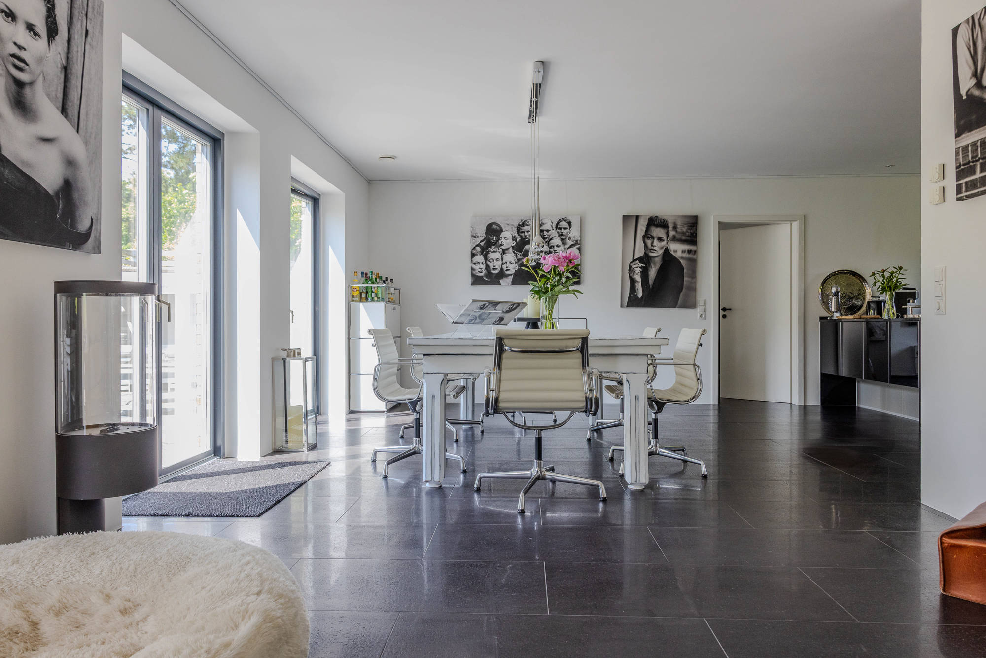 Schwarze Fußböden mit Fußbodenheizung, im Kontrast zu weißen glatten Wänden – das ist die HOOK-LINE. Eine Luxus-Küche vom Feinsten, Bäder zum Niederknien, 4 Doppel-Schlafzimmer, ein Esstisch mit Eames-Stühlen, an dem man auch Billard spielen kann, dazu ein XXL-Big-Sofa, massieren die Sinne, wie die BASS-LINE in Ihrem Lieblingssong.