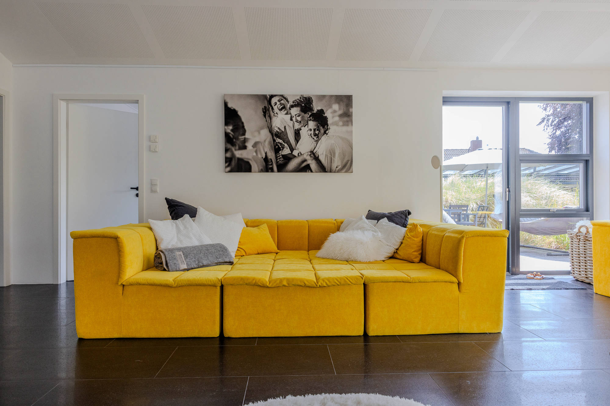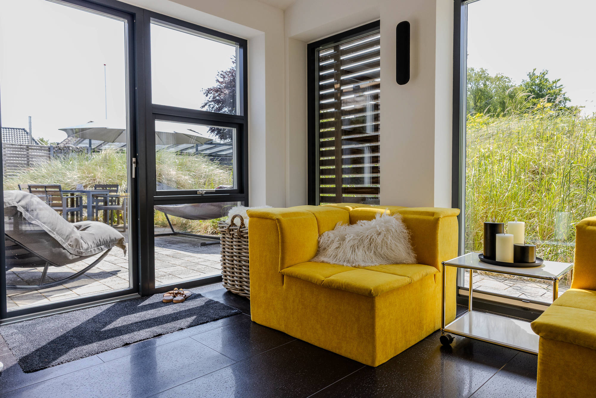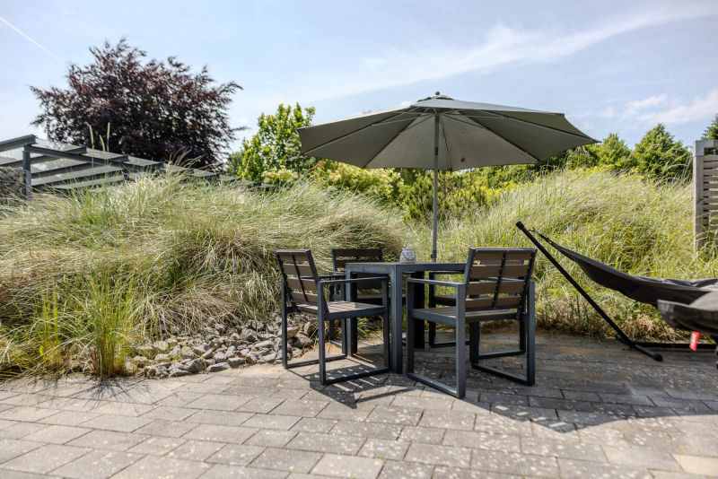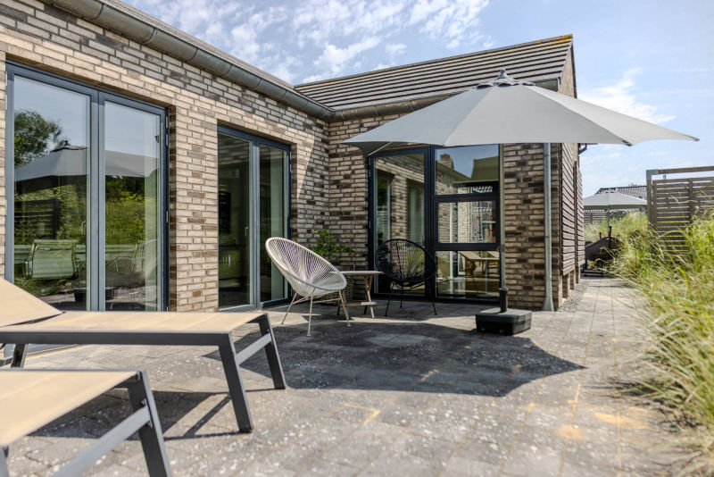 Ein Neubau im skandinavischen Stil auf einer Ebene – mitten in Tating-Dorf, dazu eine Sand-Düne mit Strandhafer – diese Kombination aus dänischem Charme und modernem Design, macht das Objekt einfach nur HYGGE.